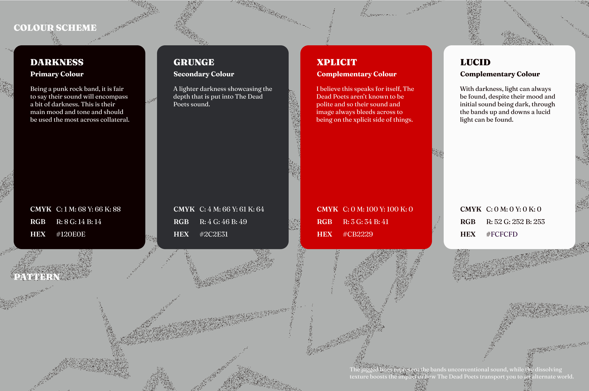 The Dead Poets, headed by Raphael Scott as lead singer alongside his four other band mates, are a classic punk, heavy rock with a modern, Pop/R&B edge. They have an eclectic sound which was brough to life through a custom identity.