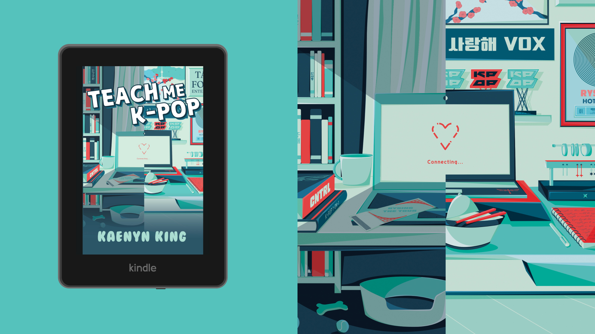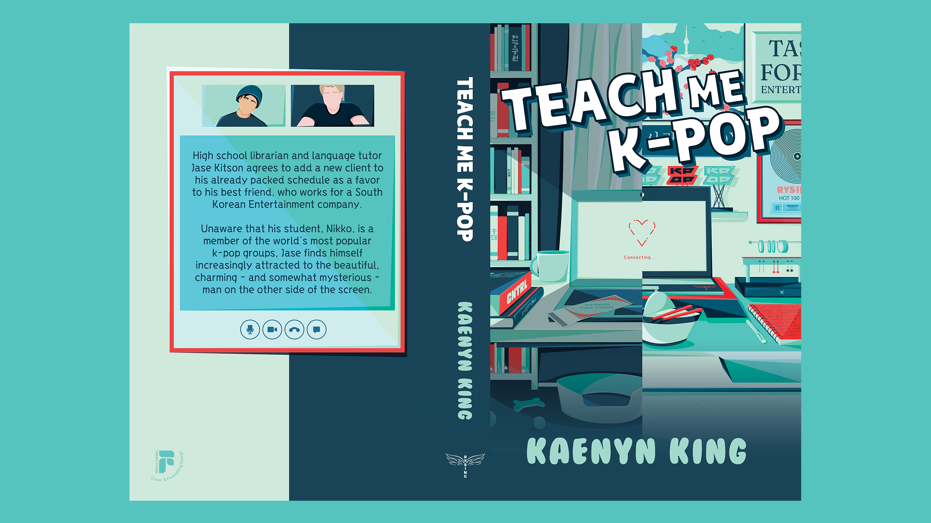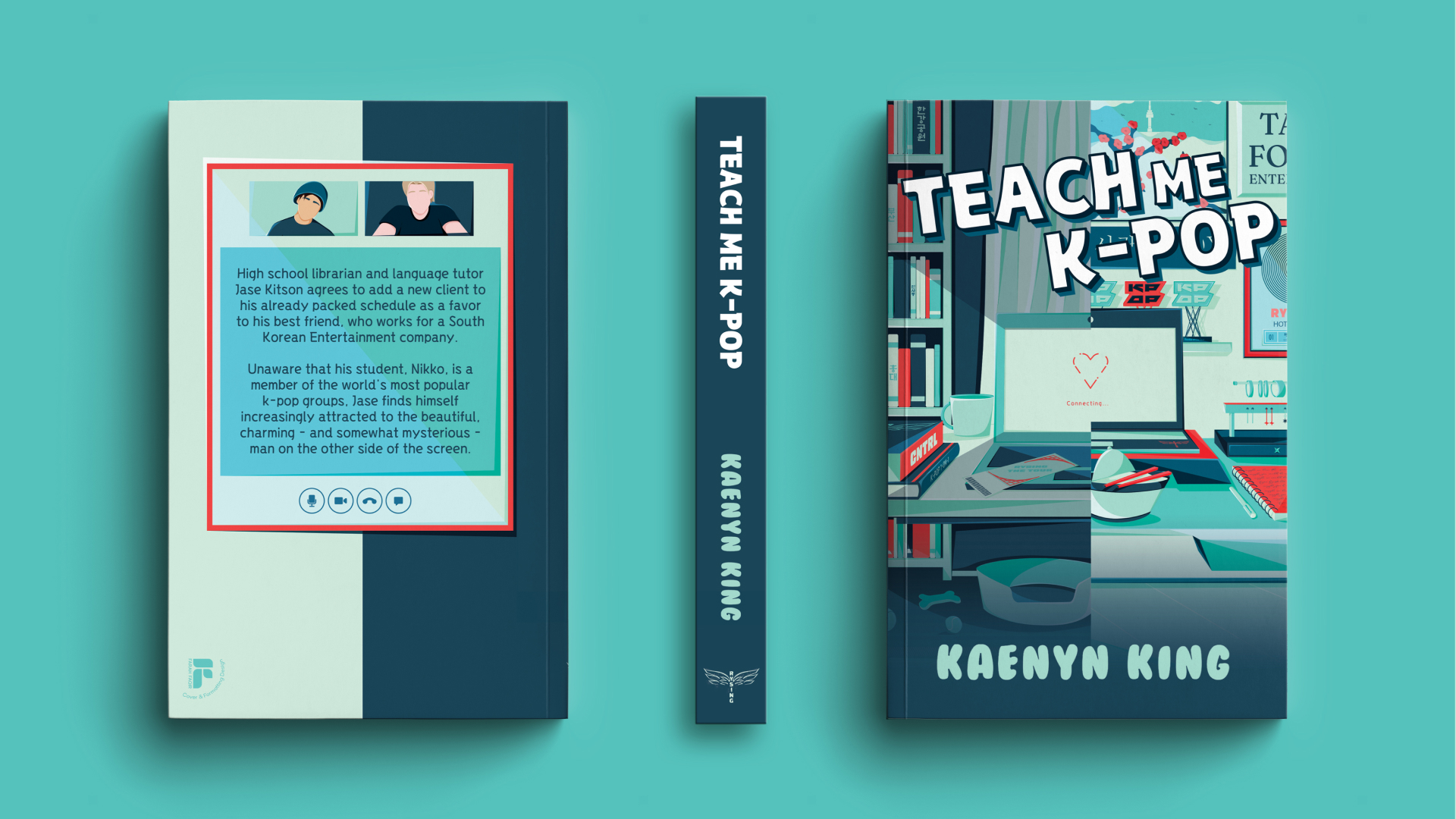 Teach Me K-Pop by Kaenyn King is a light, fluffy love story about a Korean Singer and American English Teacher falling in love while living world's apart. With the saturated romance market of illustrated covers, this refreshing cover and interior design pulls in a new direction allowing readers to experience the story at a deeper level, uncovering easter eggs (like the red *accents* string of fate) only once they've finished the book.