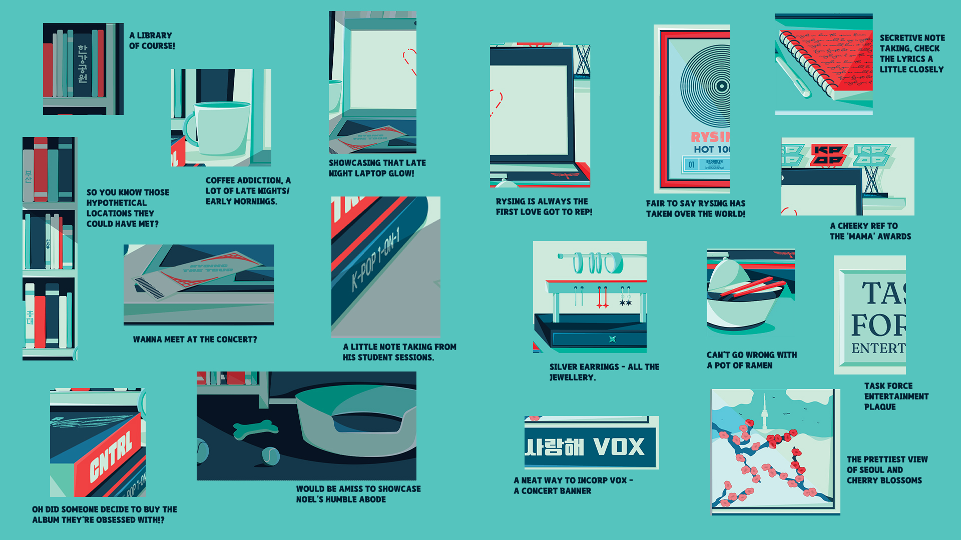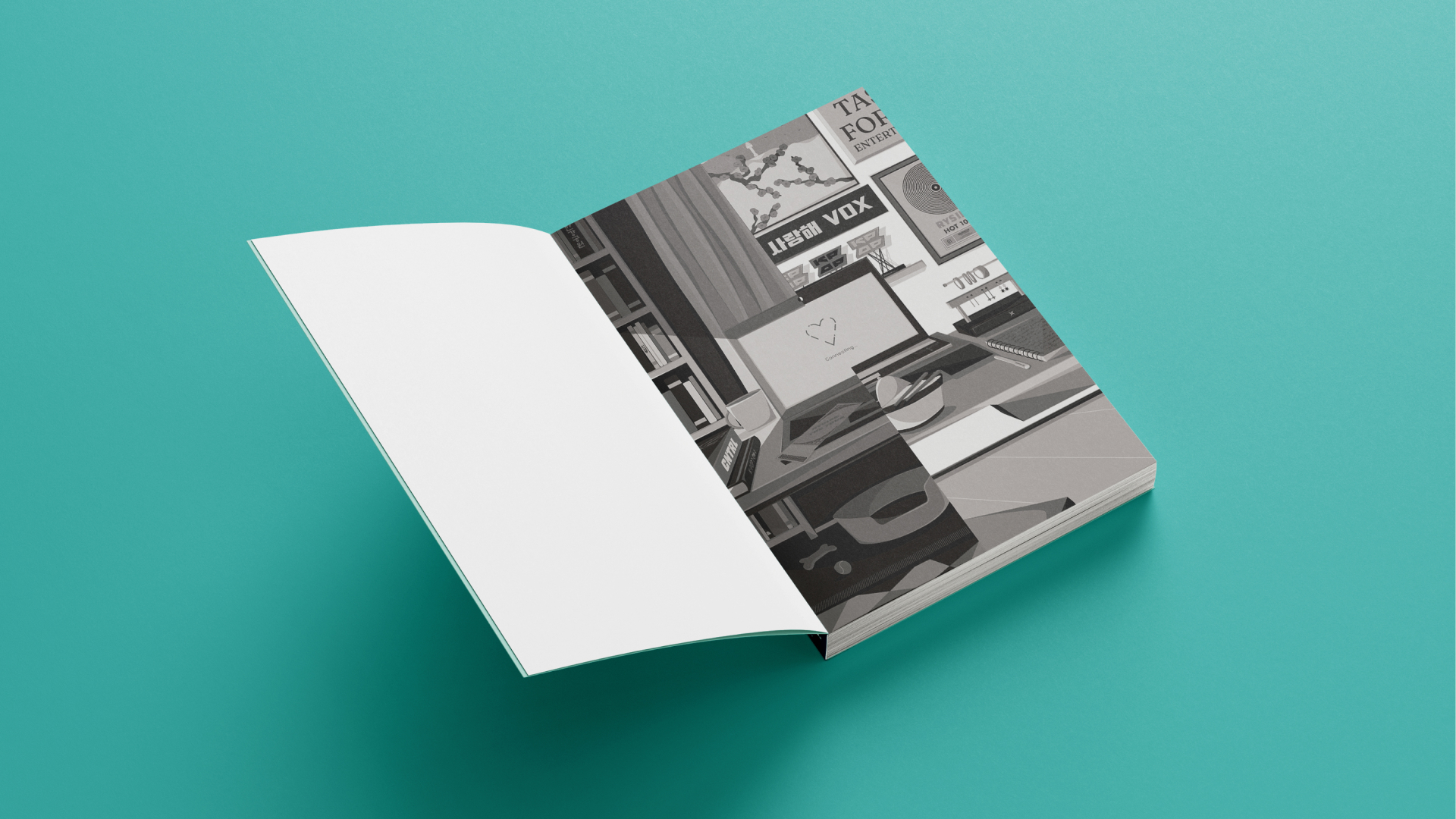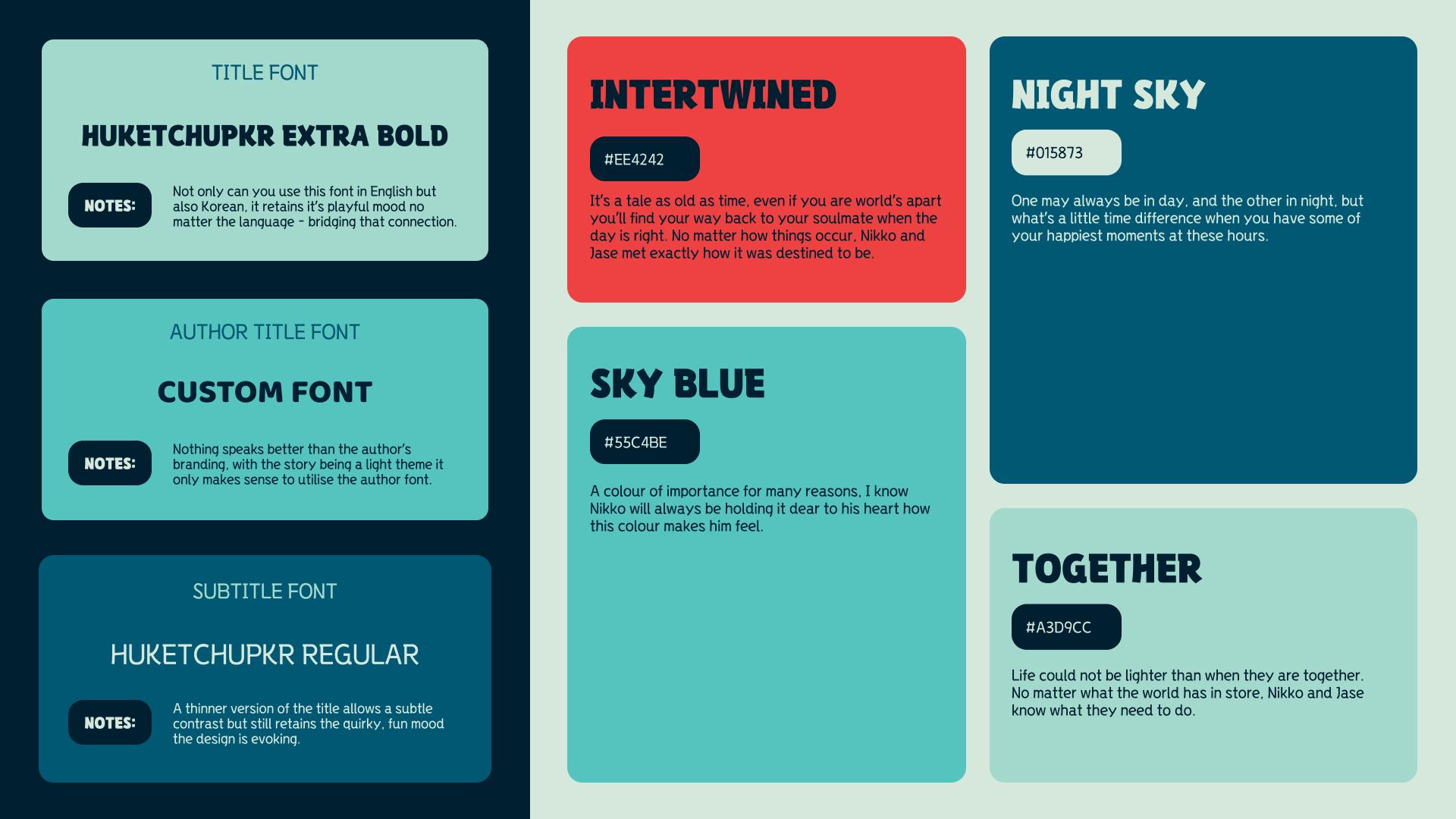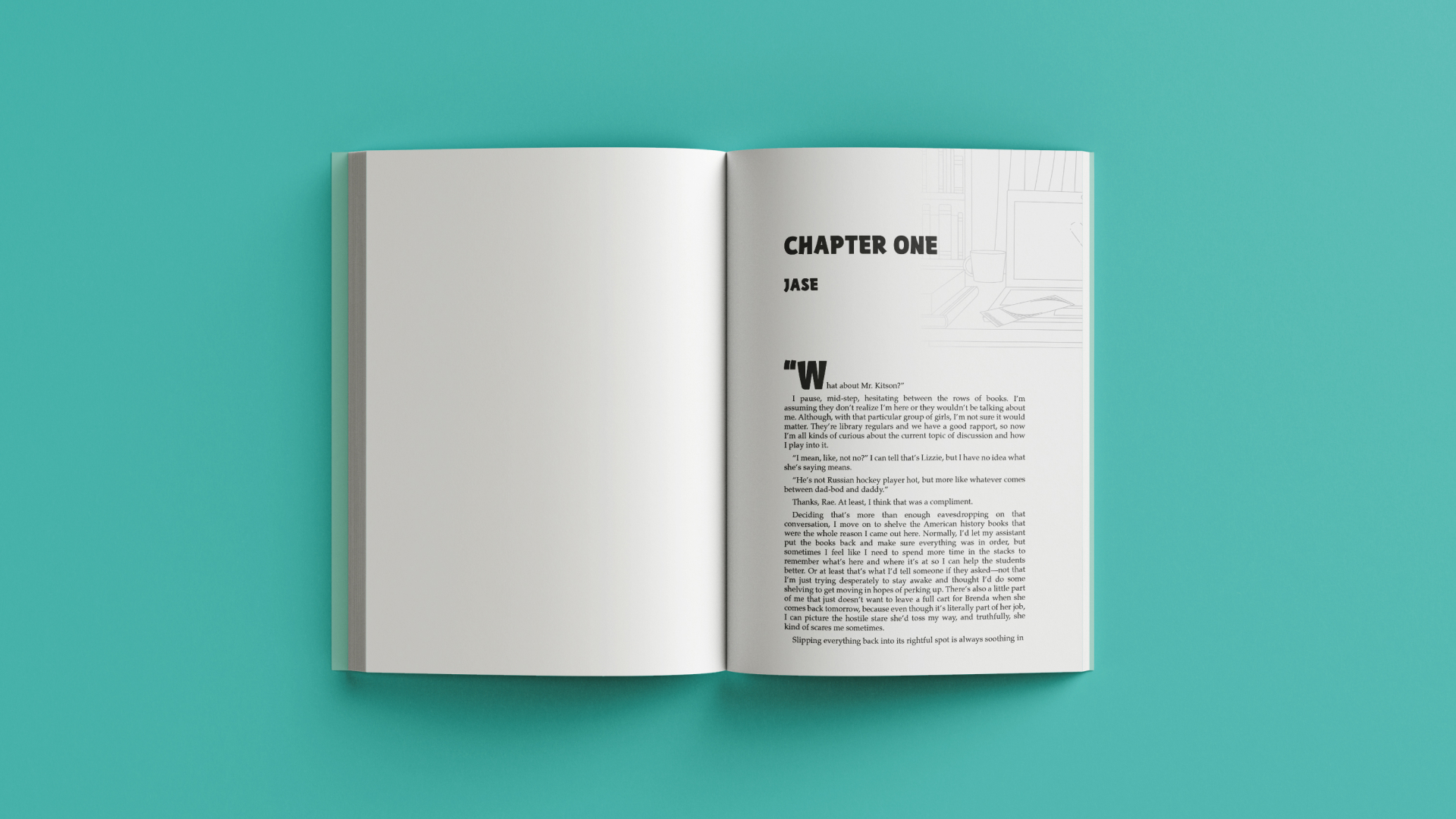 Teach Me K-Pop by Kaenyn King is a light, fluffy love story about a Korean Singer and American English Teacher falling in love while living world's apart. With the saturated romance market of illustrated covers, this refreshing cover and interior design pulls in a new direction allowing readers to experience the story at a deeper level, uncovering easter eggs (like the red *accents* string of fate) only once they've finished the book.